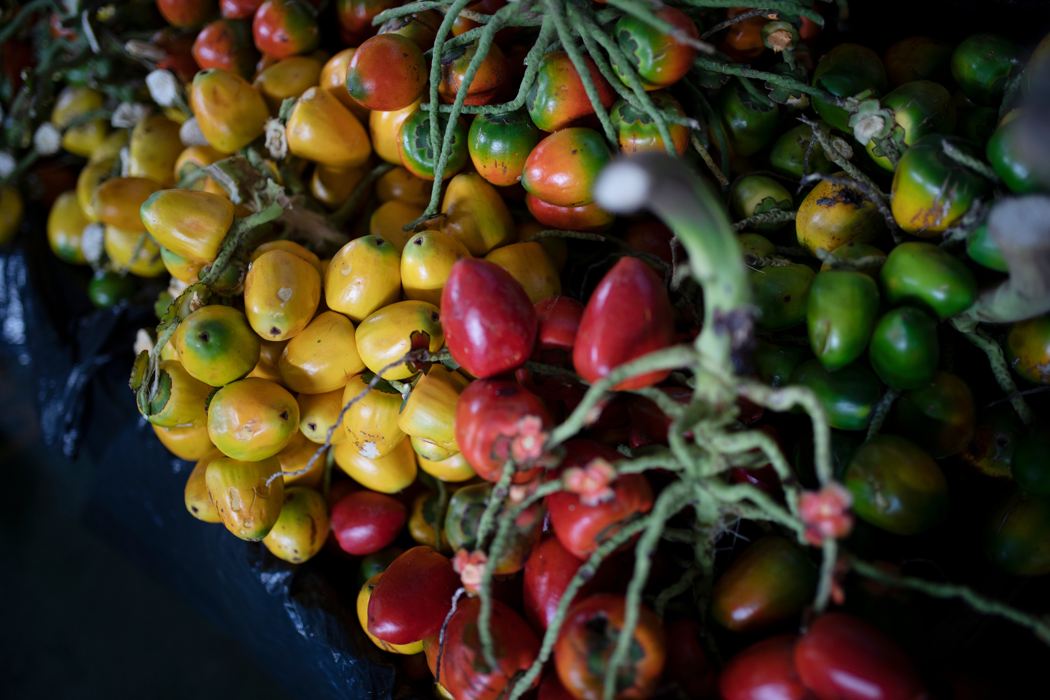Det tropiske palmetreet bactris gasipaes produserer en kjær frukt for ticoene i Costa Rica. De elsker sin røde, gule og oransje pejubaye-frukt, som vokser i klaser på grener og ser ut som små paprikaer. Palmefrukten kokes senere i vann i noen timer.