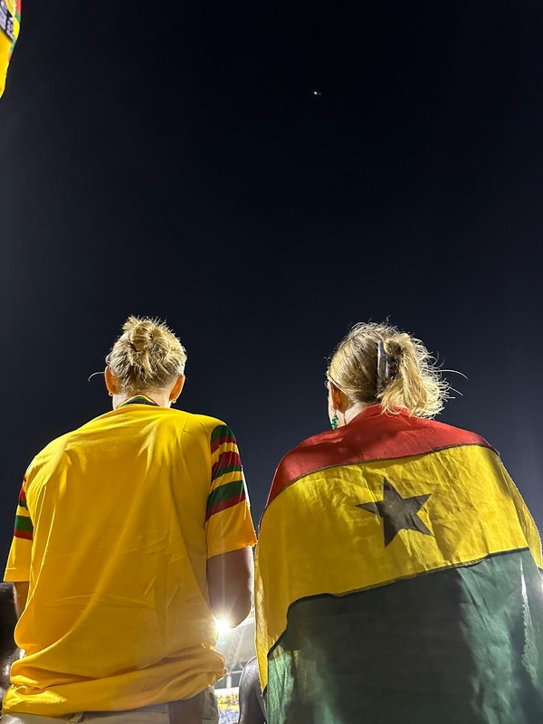 Da vi endelig kom frem til Accra, var det bare tid nok til å sjekke inn på hotellet og skifte klær, før vi dro til stadion. Utenfor stadion var det mange forskjellige selgere som solgte mat, drikke og litt merchandise for lekene.