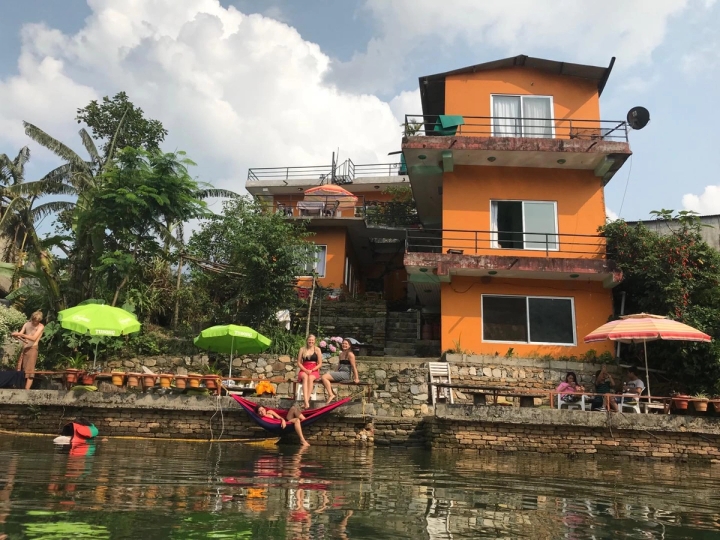 På Begnas bodde vi på “Sanu Lake On D Water” som eies av en veldig vennlig nepalsk fyr. Sovesalen kostet omtrent 500 rupier per person og inkluderte frokost.