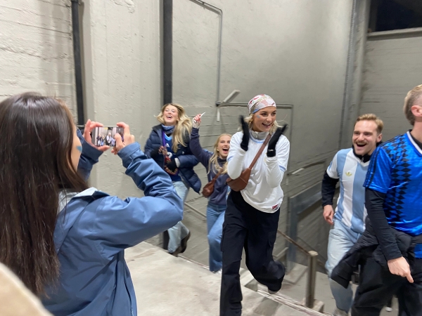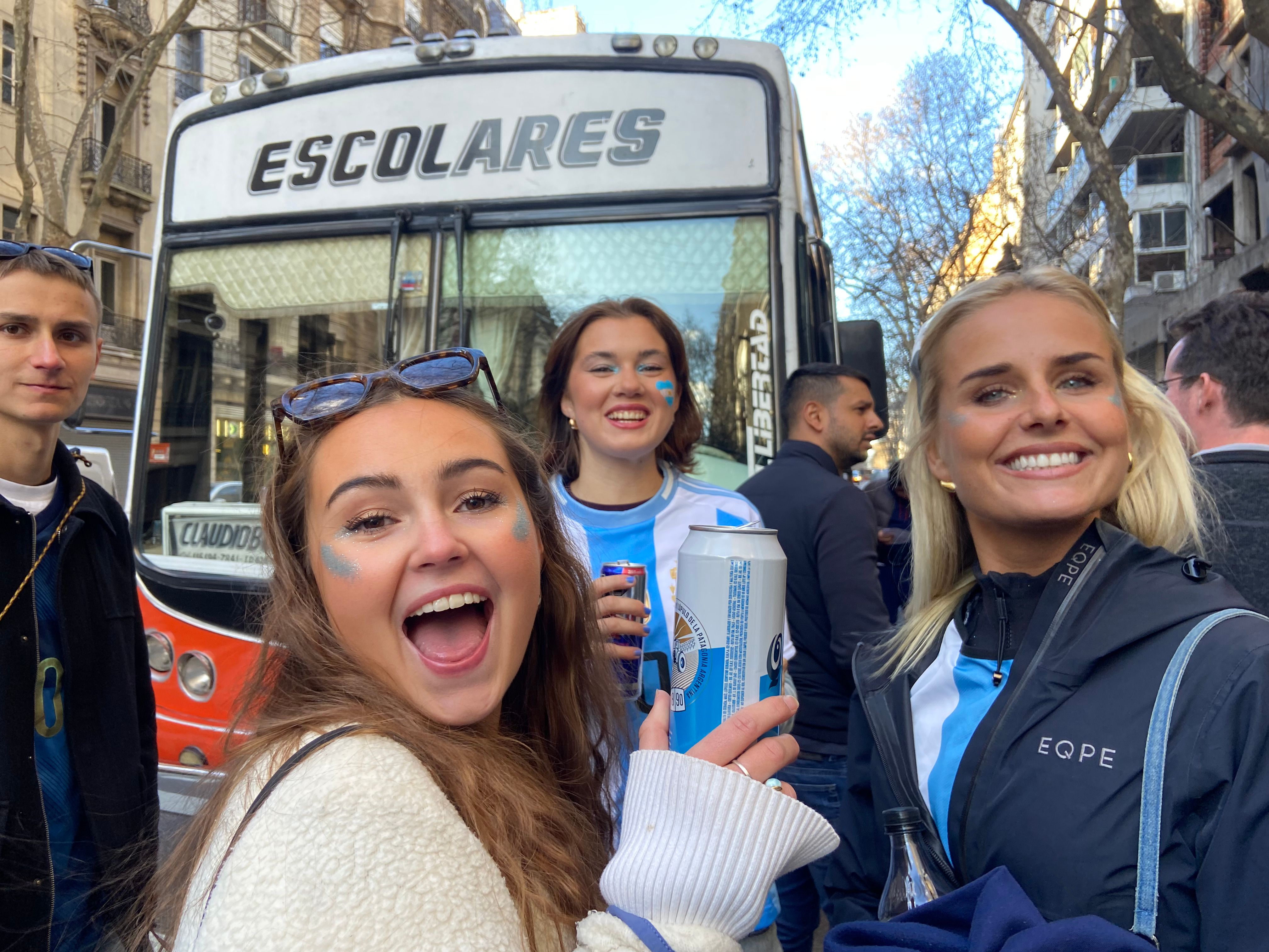 Vi skviset oss inn på en bar, og spiste “choripan” - deilig argentinsk streetfood som består av en salt chorizo-pølse i brød, med chimichurri oppå, og drakk argentinsk øl, mens vi sang og ropte til kampstemningen.