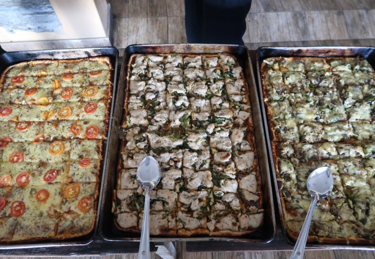 - Onsdag: Tre typer pizzaer: margherita pizza, pizza med rosmarin, sopp og aubergine, og en vegansk pizza med cashewost, sopp, spinat og erter!