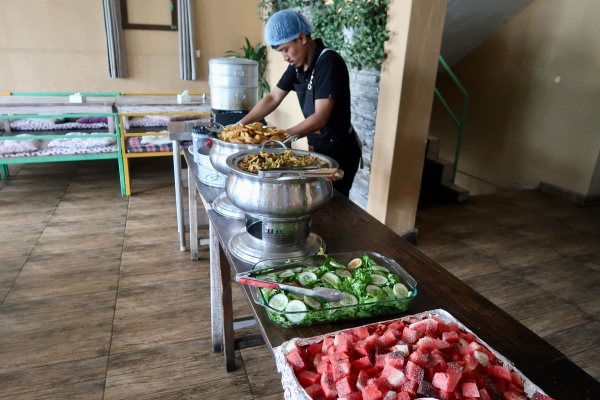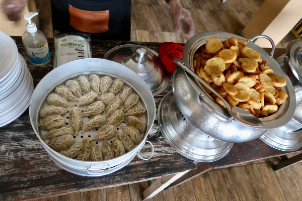 - Fredag: Dampede momos, en typisk nepalsk dumpling fylt med grønnsaker. Som tilbehør fikk vi stekte grønnsaker og poteter.