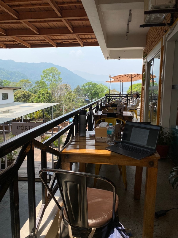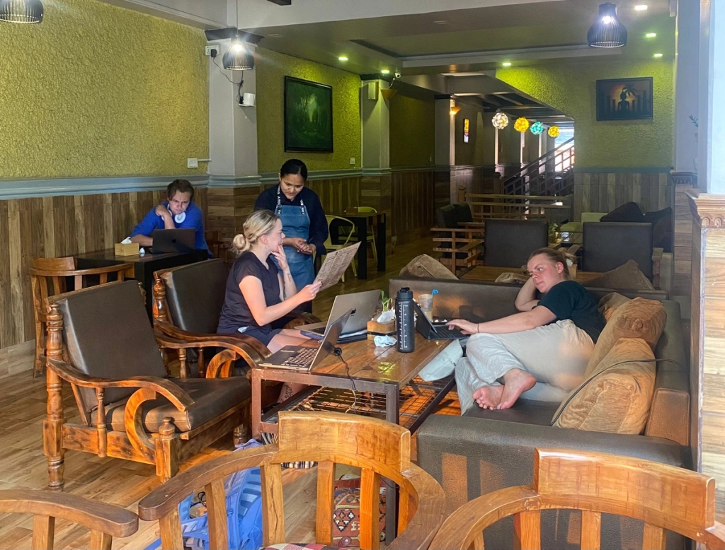 Personalet er veldig hyggelige og kjenner studentene og programmet. De serverer sunn og god mat som smoothie bowls, avokadotoast, wraps og mer tradisjonell nepalsk mat. Du kan også prøve takterrassen ved solnedgang!