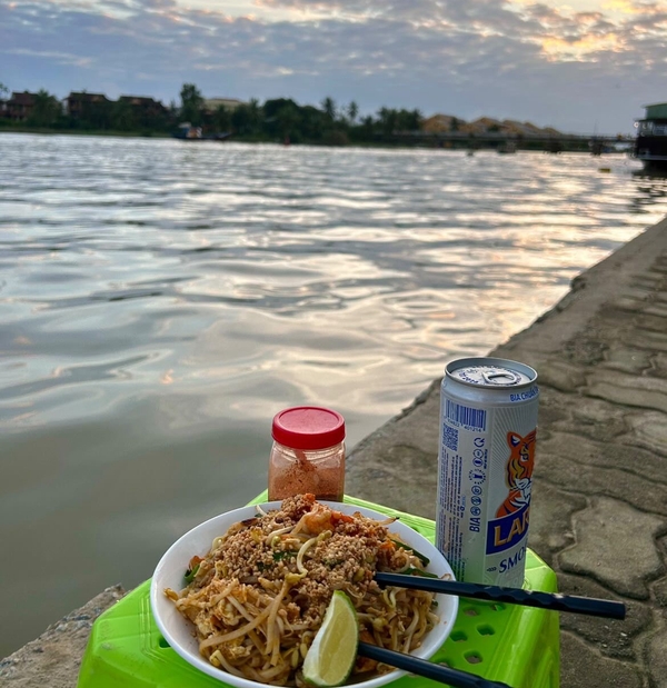 Det andre stedet som ikke er relatert til mat er Cua Dai-stranden. Denne stranden ligger omtrent 20 minutter unna med sykkel, og vi tilbrakte ofte ettermiddagene våre der når været tillot det. Det er mange strandrestauranter som lar deg bruke solsengene deres hvis du kjøper en drink.